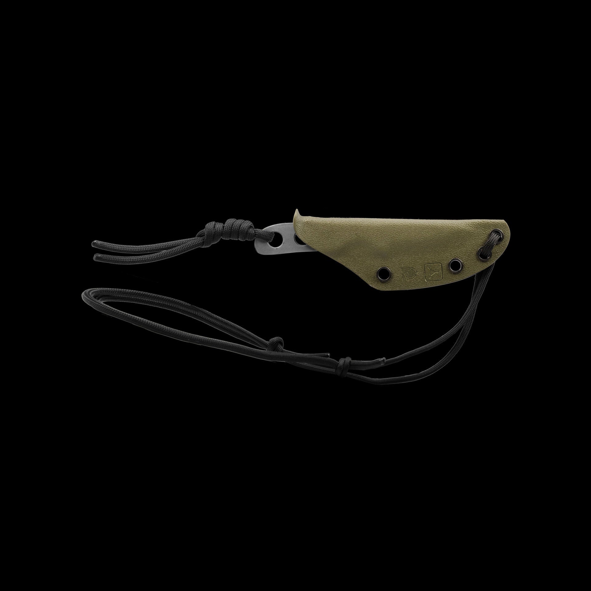 The Thorn comes with a self locking, kydex neck carry sheath, that has a simple black 550 paracord adjustable neck loop. The hole spacing allows you to add a teklock or other belt clips if required or even add it to a larger kydex sheath as a piggy back companion blade. Our TAD Edition comes in either black or OD green kydex with our logo mirroring Ben and Lois on the blade.