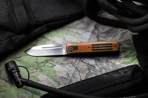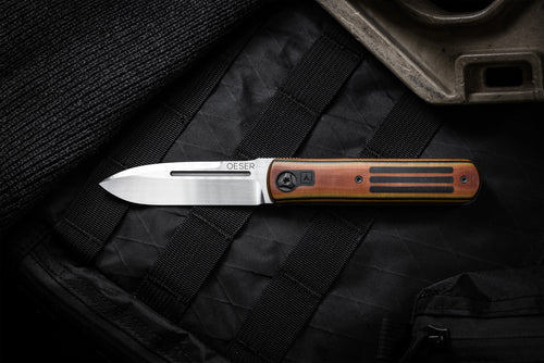 Jared Oeser seamlessly blends the best of old and new design cues with exacting tolerances to produce stunning heirloom quality knives. The Capricorn is thoroughly modern, but feels like a classic design in hand. Precision tolerances equate to a concert of parts when deploying the front flipper of the flawless hand rubbed spearpoint blade. Made from AEB-L steel, it rides on ceramic bearings when opening and is held fast by a ceramic detent when closed.