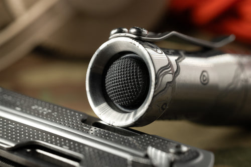 All CWF Peanuts come with a titanium stonewashed deep carry pocket clip and stainless screws for comfortable carry and superior strength. Included is a flat top 18350 rechargeable battery.