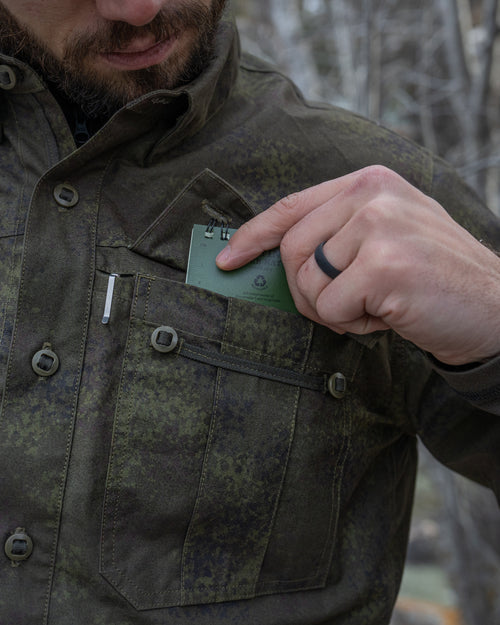 Oversized pleated chest pockets expand to secure tools, maps, or field notes during critical tasks, while a new dedicated internal organizer keeps your most essential instruments exactly where you need them.