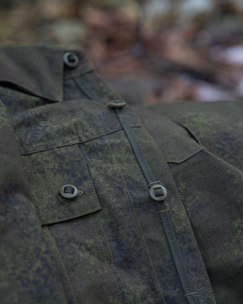 Buttons anchored with bartacked webbing ensure durability and quick field repair when the unexpected inevitably occurs.