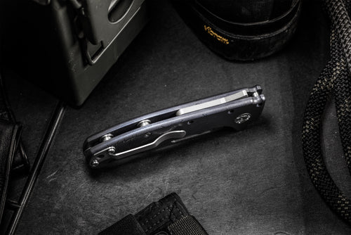 The MG AD20S TAD Edition is a stout knife built to handle most any task. This “Slim” edition has a thinner Magnacut blade and full flat grind for incredibly aggressive cutting power. While thinner than his standard blade, this TAD Edition is still up for heavy duty work. The ergonomic and robust titanium handle gives the knife a secure feel in the hand. The stainless steel spring pocket clip is set up for tip-up, right-hand carry.