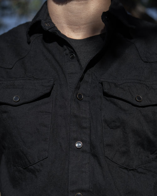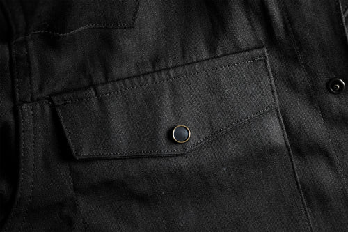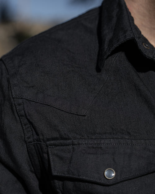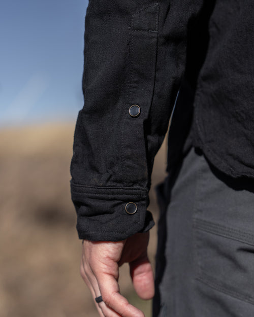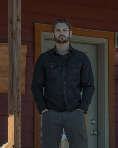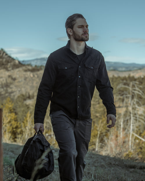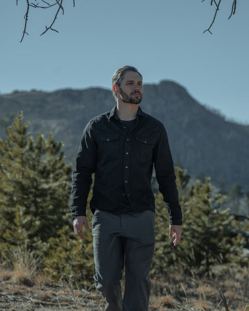The Badlands Kuroki Denim Shirt in Ghoul Black is denim beyond nostalgia - quietly severe, purpose-built, and designed for the demanding when the landscape turns unforgiving.