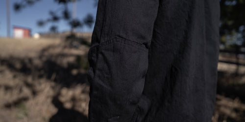 Constructed from lightweight Japanese denim woven at Kuroki Mills, the 7.7 oz/yd² 2×1 twill delivers a denser, more substantial hand than traditional shirting denim while remaining comfortable for extended wear. The added weight introduces structure and resilience without sacrificing mobility, allowing the fabric to break in gradually and develop character through real use rather than artificial distress.
