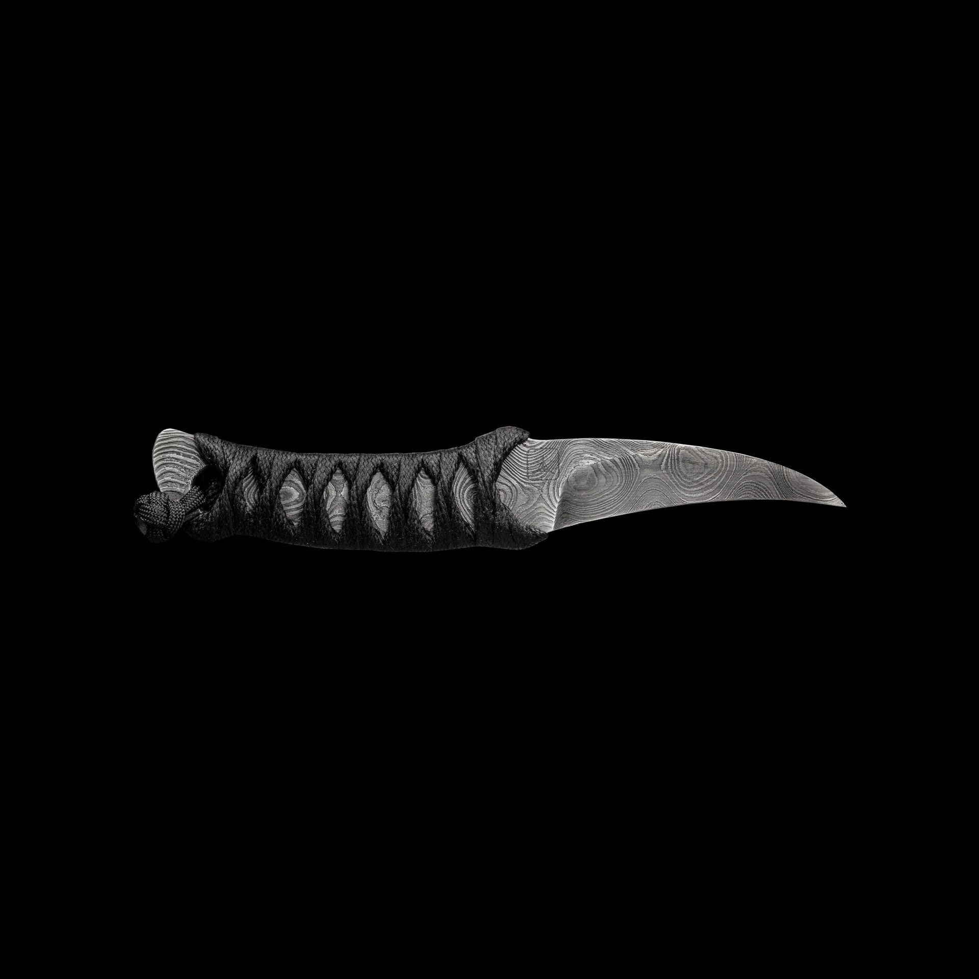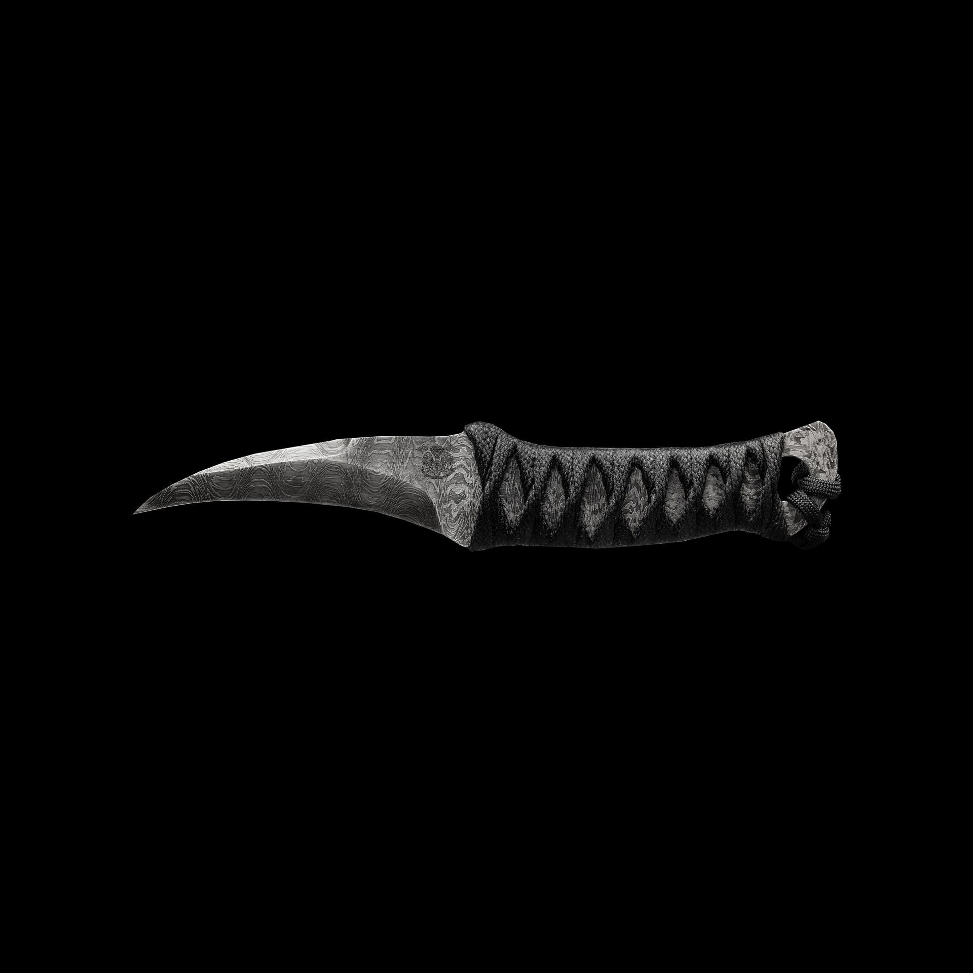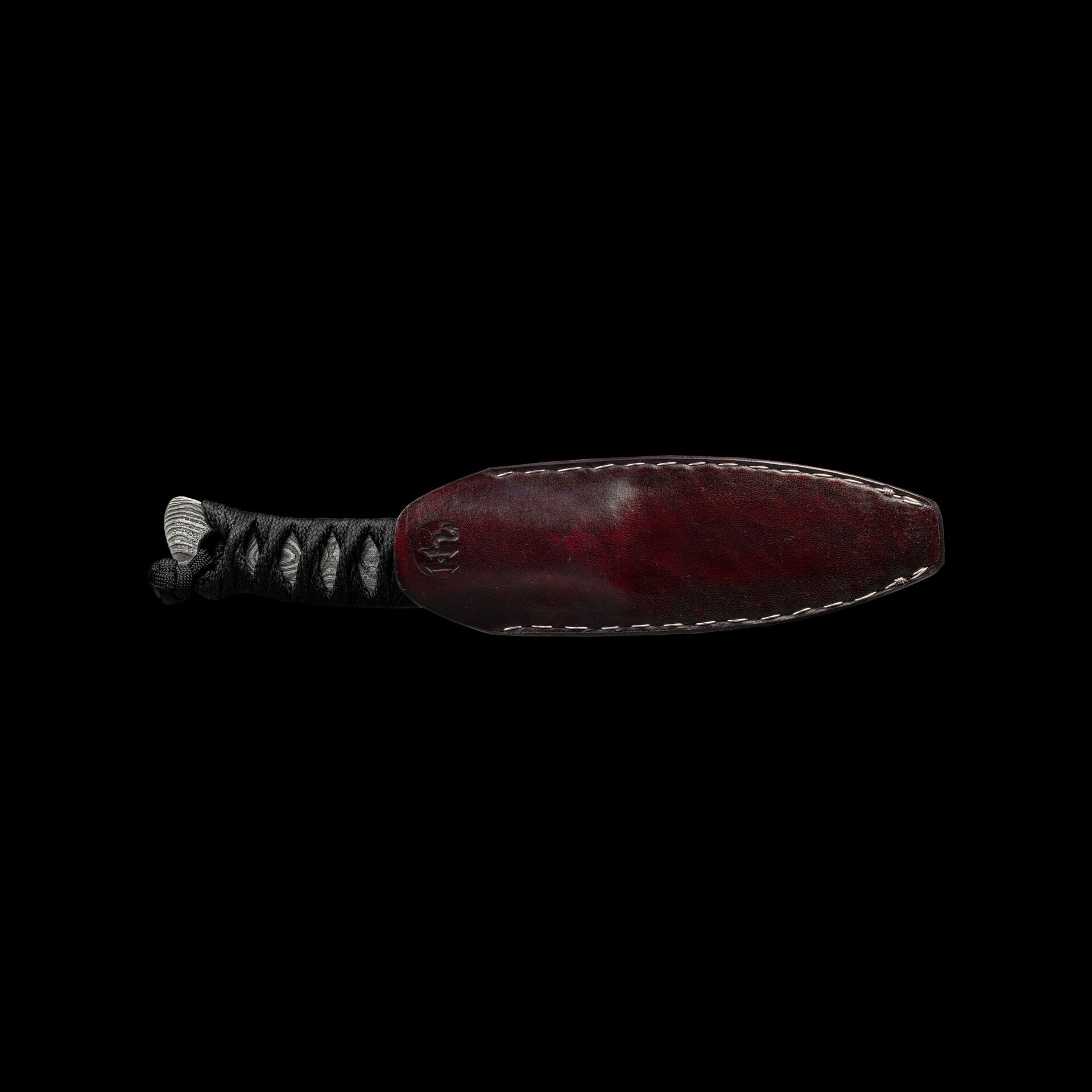 The reversed edge, matched to a full sized secure handle, make for a powerful emergency cutting tool. The black Japanese style wrap has no under layer, creating a larger void to further lock onto your hand. The wrap is coated in Marine epoxy and combined with the contours of the handle, this knife is secure under any circumstance. Earls Customs La Rona is small enough to disappear in your daily carry but strong enough to serve when called into action. The sheath is just as well executed for its purpose. The custom ambidextrous sheath is a deep carry design. Handmade from leather in an exclusive OxBlood color with hand stitched nickel wire and Tracker Dan clip. Made by @JeyrHooligan.