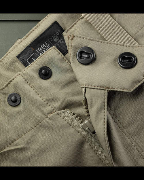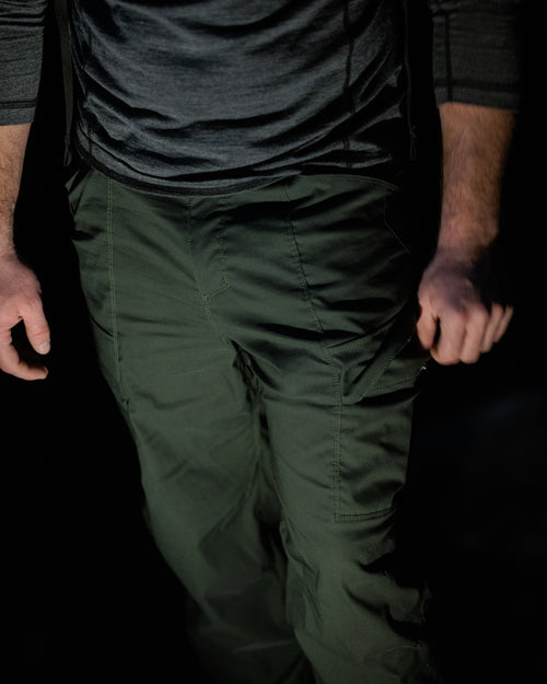 Storage draws from the proven architecture of our Force 10, refined for speed and efficiency. Low profile cargo pockets ride closer to the body to reduce bulk while maintaining immediate access. A newly designed partially tacked snap cargo flap secures contents without slowing entry, while zippered rear pockets keep essentials locked down. In addition, the coin pocket is positioned higher within the hand pocket and features a canted orientation that improves security while reducing gear bite during high angle movement.