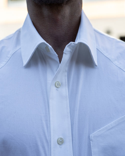 The Gambit Pocket Shirt brings precision and purpose to a timeless silhouette. Woven in Italy from tightly constructed cotton broadcloth with a measured degree of stretch, it delivers a crisp drape that moves naturally with the wearer. The fabric’s dense weave holds its structure and resists wear, while subtle flexibility ensures comfort through long days in motion.