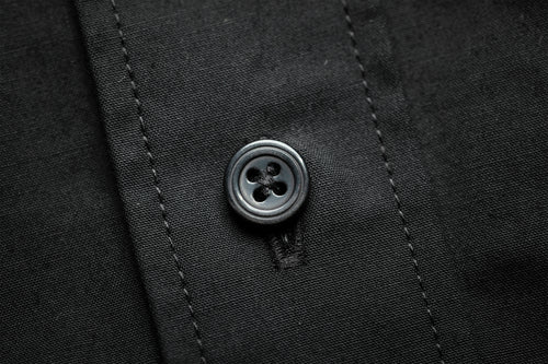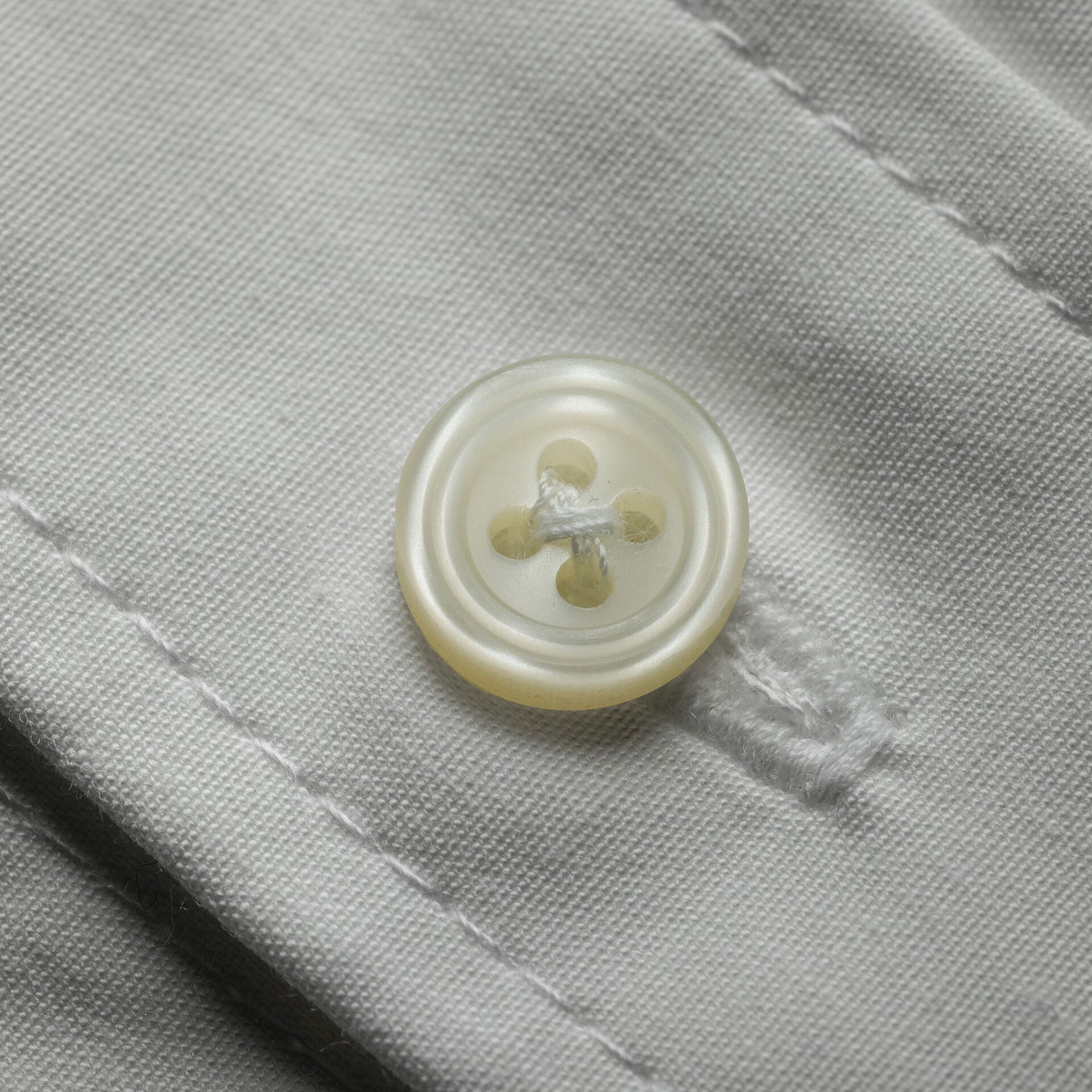 4-hole shirt buttons on center front placket, cuff placket and collar
