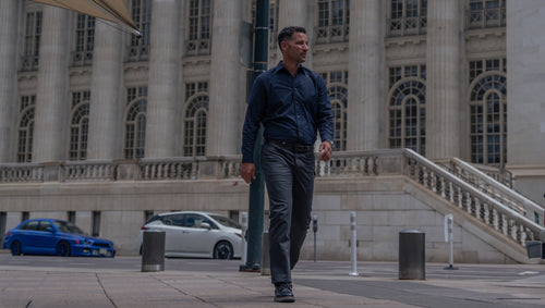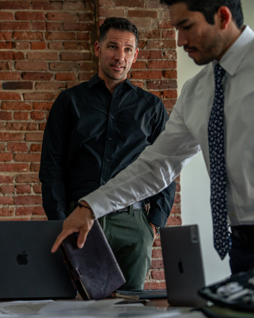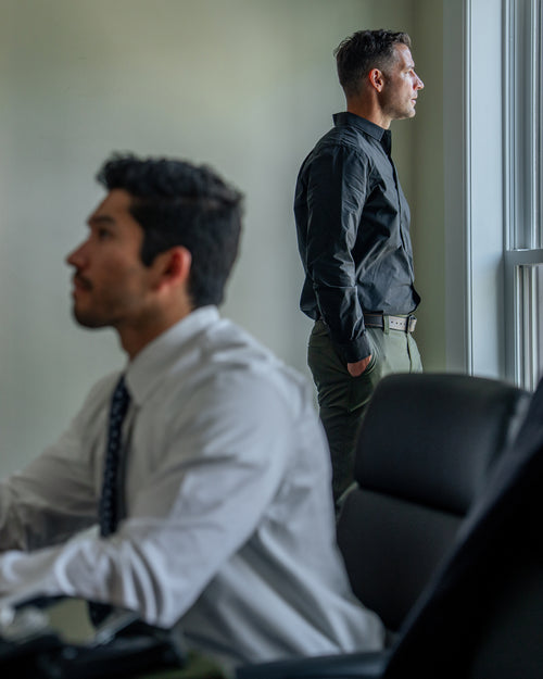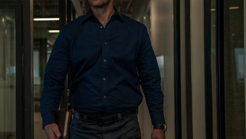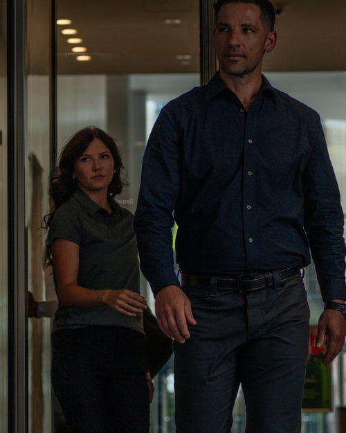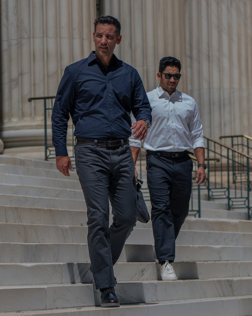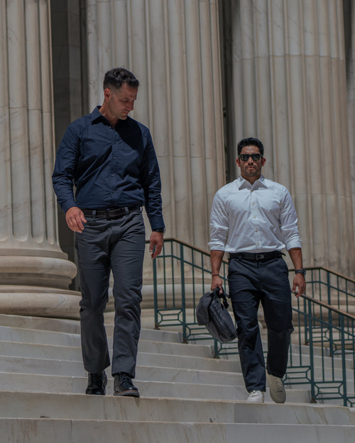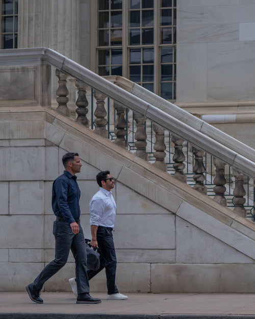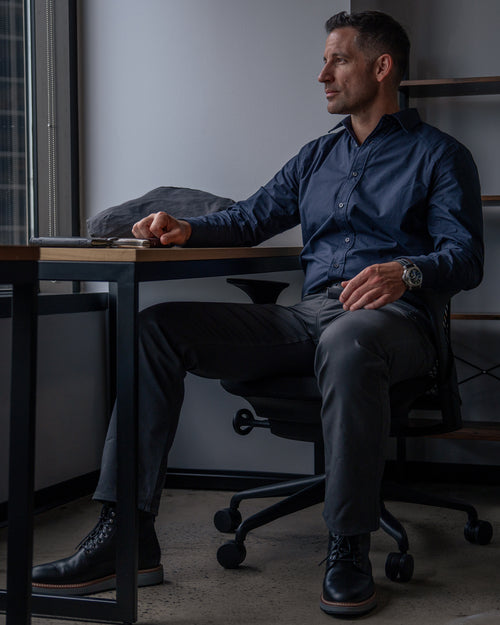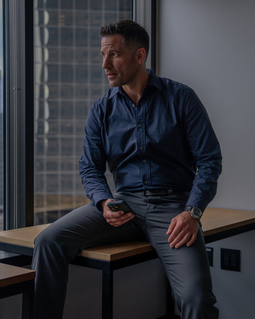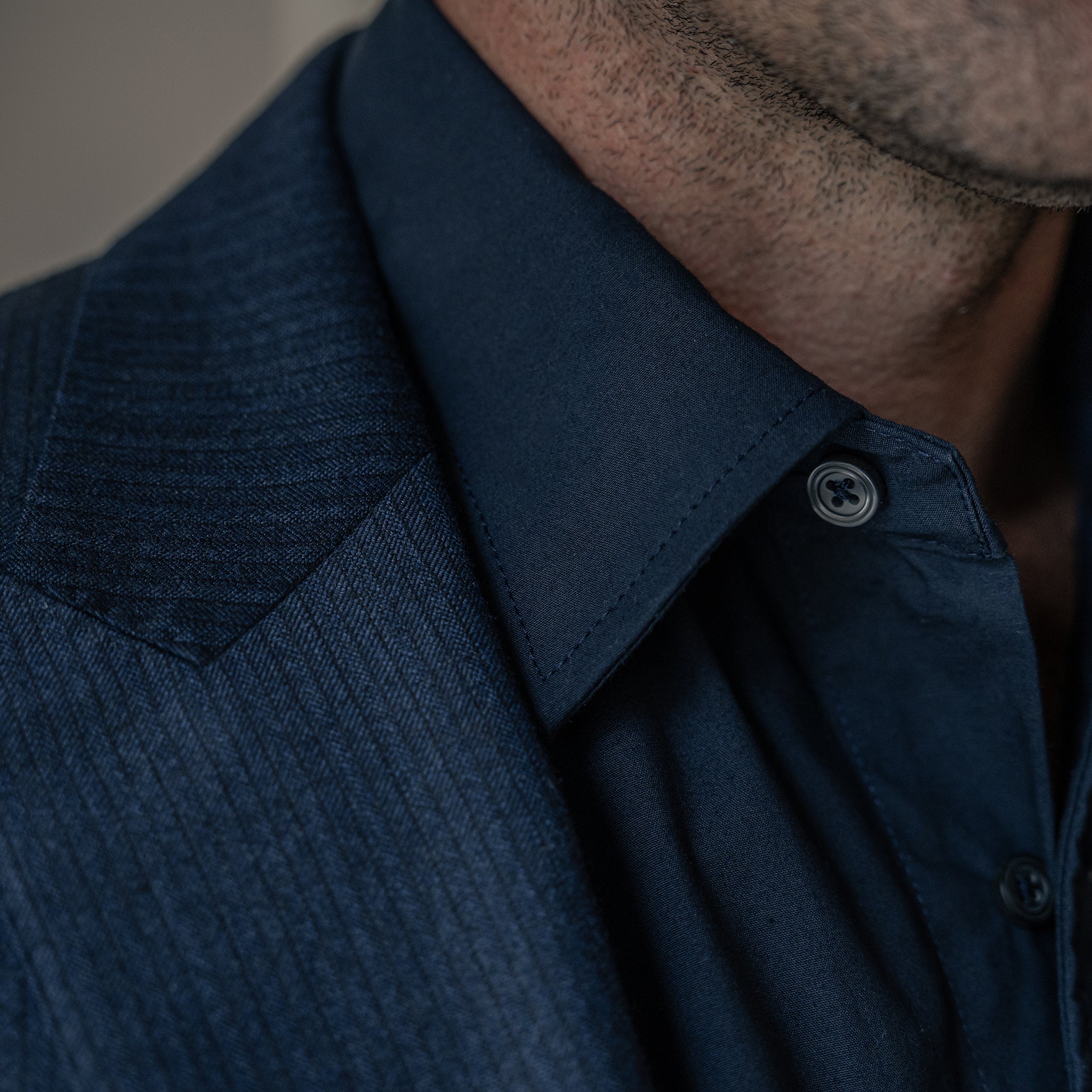 Gambit's gusseted side-seam construction adds mobility and elegance when worn untucked, and reduces bulk when tucked in. Classic 4-hole pearlescent buttons, ample sleeve plackets that enable clean folds, and strong collar proportions make Gambit adept at blending in across diverse levels of attire.