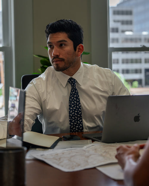 Characterized by classic elements that stand the test of time, the Gambit is a versatile wardrobe staple that effortlessly blends into diverse levels of attire. The inclusion of four-hole pearlescent buttons not only adds a touch of sophistication but also ensures ease of use. Ample sleeve plackets facilitate neat and clean folds, underscoring the meticulous attention to detail. The shirt's collar proportions strike a perfect balance, exuding strength and refinement.