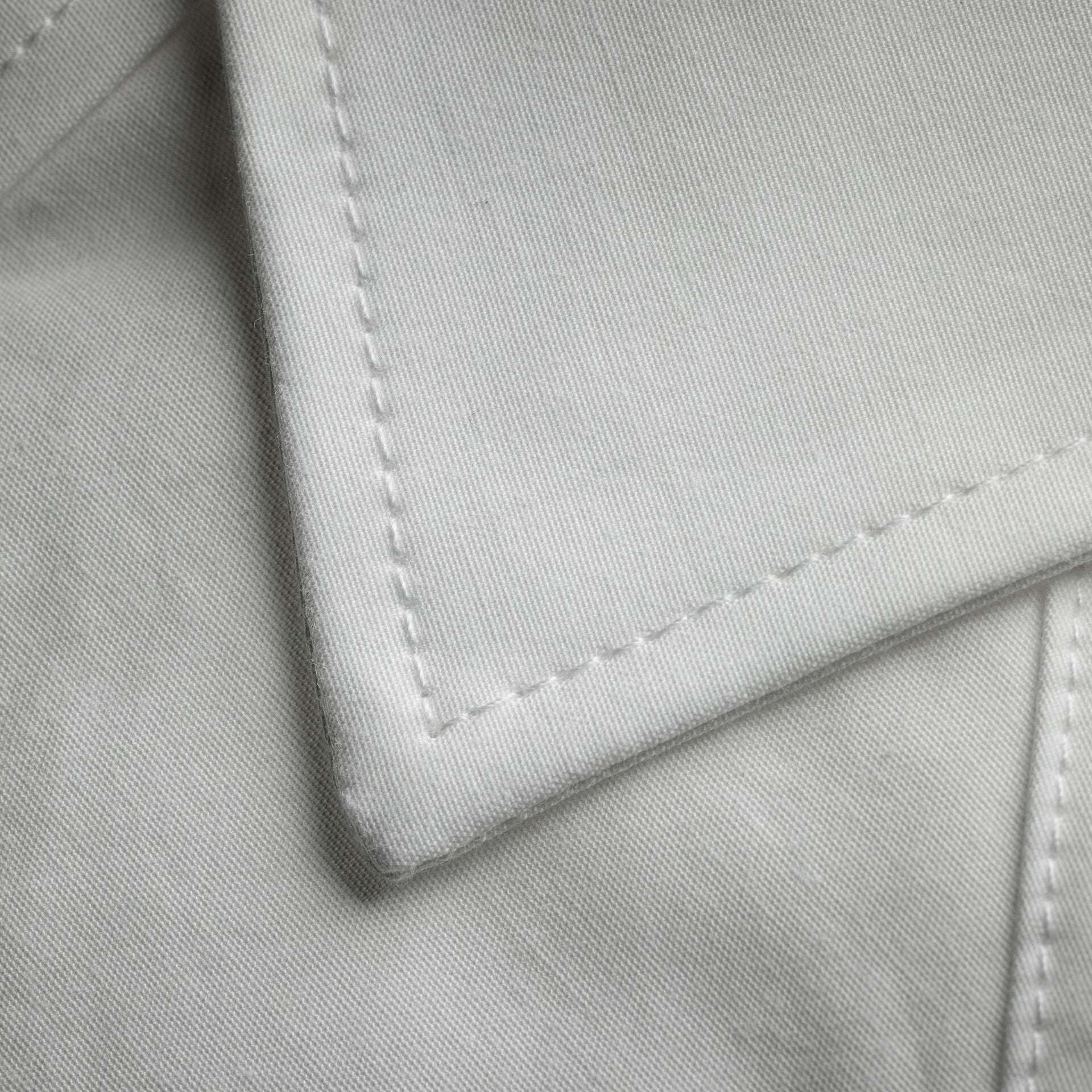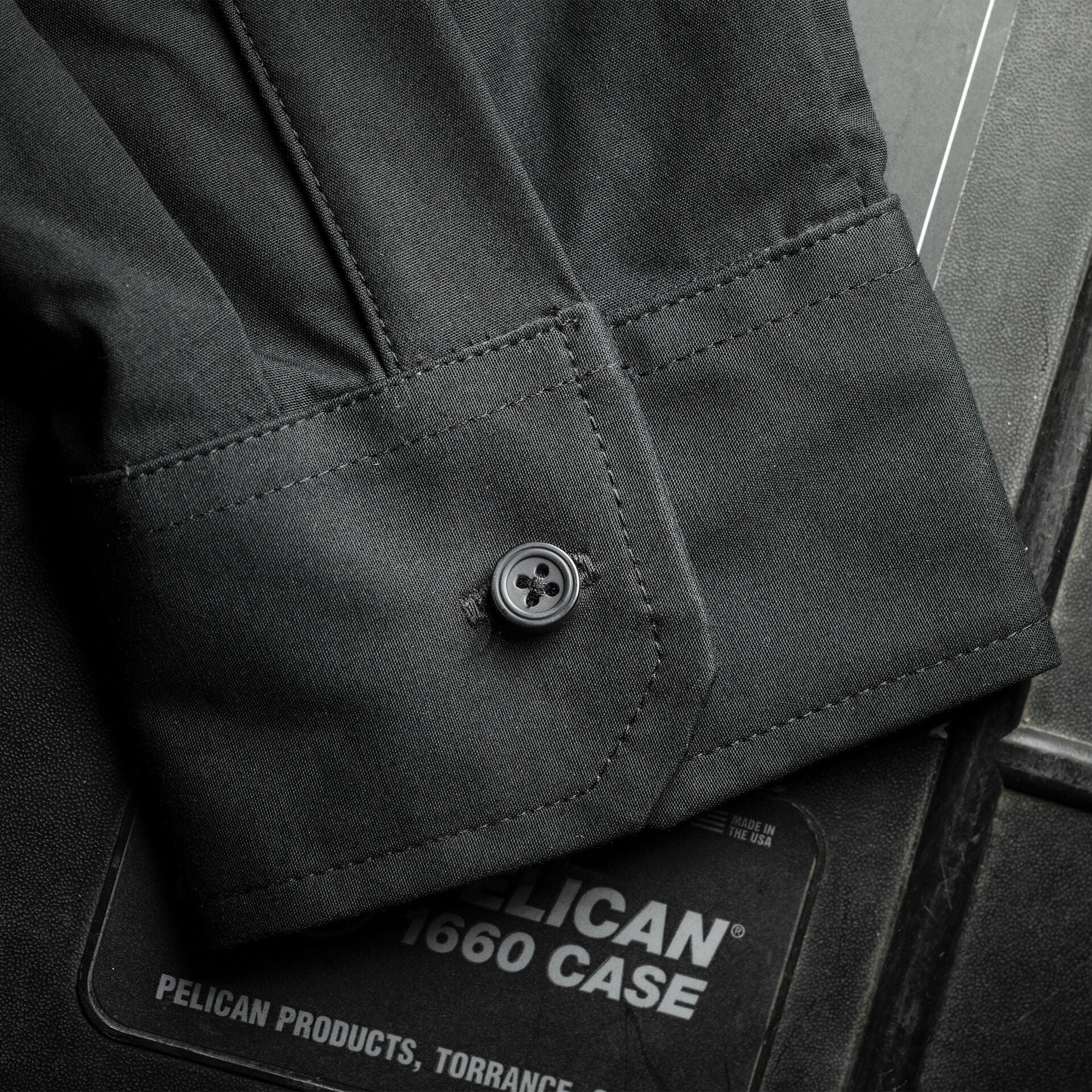 The Gambit Dress Shirt brings precision and purpose to a timeless silhouette. Woven in Italy from tightly constructed cotton broadcloth with a measured degree of stretch, it delivers a crisp drape that moves naturally with the wearer. The fabric’s dense weave holds its structure and resists wear, while subtle flexibility ensures comfort through long days in motion.