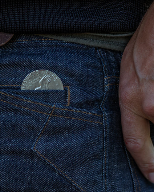 This Special Edition (SE) of Intercept pants are made from prestigious Kaihara denim, crafted by the legendary Fukuyama-based mill whose century-long mastery of indigo has defined Japanese denim. Since 1893, Kaihara has combined time-honored rope-dye techniques with vintage shuttle-loom weaving to produce fabrics prized worldwide for their depth of color, nuanced texture, and lasting strength. Made available in Kaihara Cross Hatch Indigo 10.5oz denim, these Special Edition pants include exceptional details such as welted coin pockets, chainstitched hems and waistbands, and flat-felled inseams, outseams and back rise.