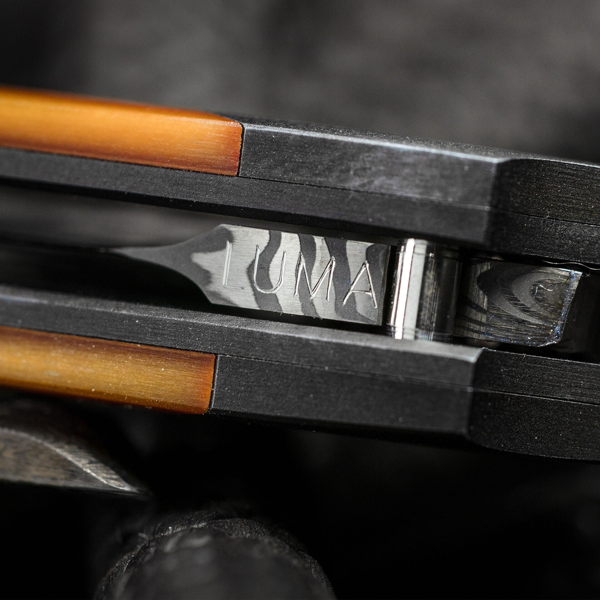 Finer details include the 3D milled pocket clip and backspacer in Damasteel complementing the blade. Jason Lumher seamlessly blends the best materials with practical design cues to create a style all his own. The LumaBlades Calypto is a stunning gentleman's knife destined to be handed down to the next generation.
