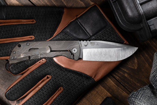 The McNees PM Mac 2 3.5 G2 TAD Edition is the perfect balance between a gentleman's pocket knife and full size folder. A true mid-size, the PM Mac 2 3.5 G2 is easy in the pocket but robust enough for heavier tasks. Its lightweight dimensions and contoured frame make it all but disappear in the pocket. Custom oversized thumb studs, in conjunction with caged bearings, deploy the upswept clip point with authority. The Magnacut steel is incredibly durable, as is its heavily stonewashed finish. The upward cant and trailing point on the blade present the edge while keeping the hand out of the way during cutting tasks. A titanium framelock keeps things secure while the contoured slabs prevent hotspots during heavier work. Upgraded steel, machine hollow ground blades with redesigned jimping are all new on this edition.