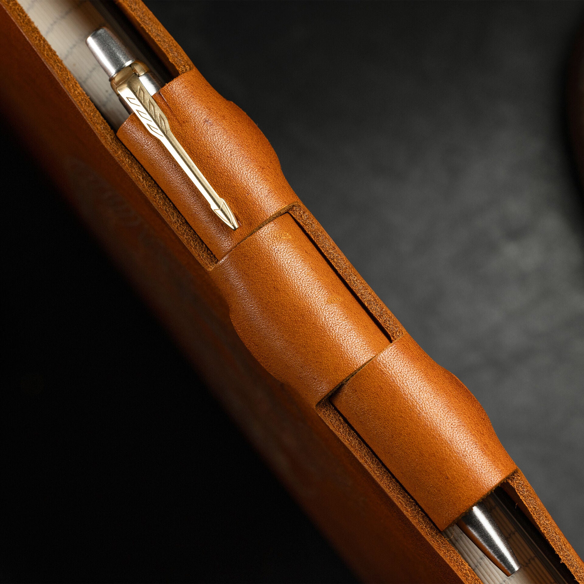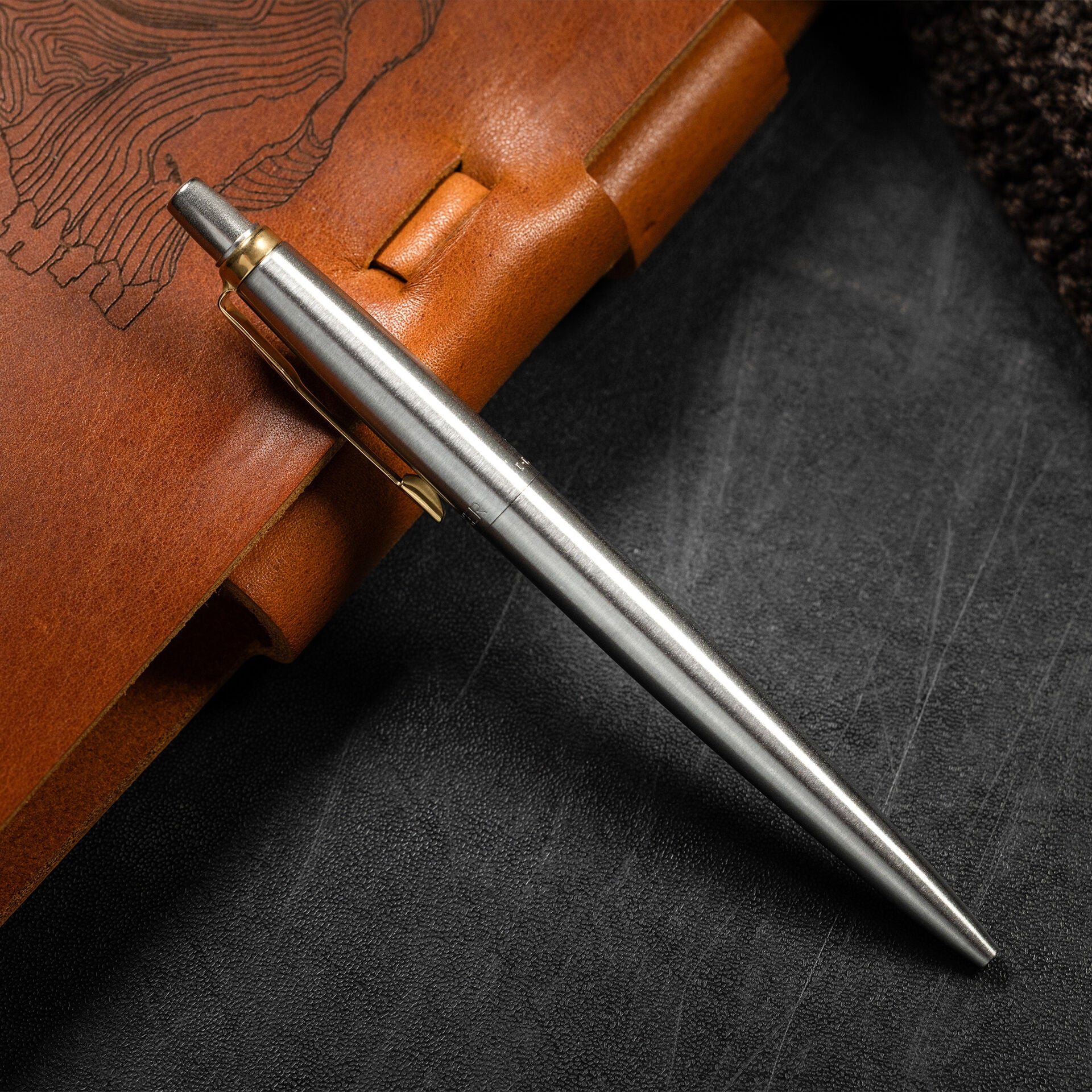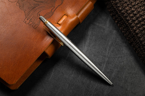 Each of our Murdy Leather Journal’s will come preinstalled with a ruled insert. Furthermore, each journal comes with a stainless steel Parker Jotter with gold trim.