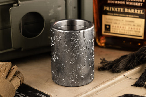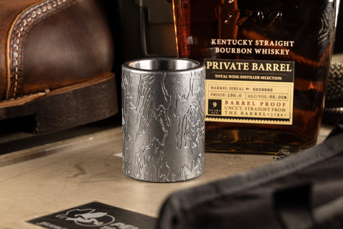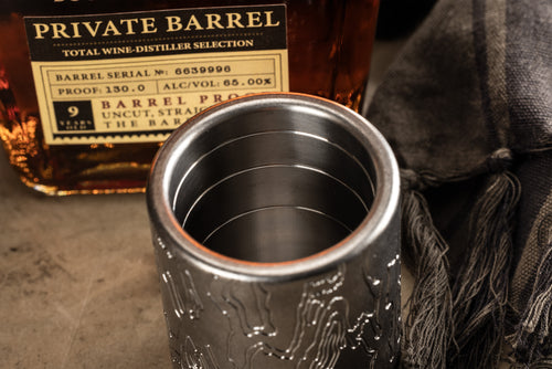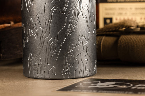The folks at Nottingham started off with a solid chunk of titanium, and didn't stop machining til nothing was left except for an amazing shot glass featuring our signature topo pattern! Light, strong, and damn-near indestructible these shot glasses are perfect for the best spirits, and the worst scenarios! Internal markings denoting 1, 1.5, and 2 ounce pours.