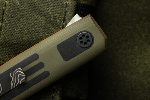 Finer details include Oeser milled into the tang of the blade next to its corresponding number while our logo is milled into the presentation side badge. The 3D milled blackened titanium pocket clip has our signature topo pattern laser applied and is unique to each knife. Finally, the blackened titanium pivot, screws and backspacer complete the aesthetic.The Jared Oeser Tachi Elite TAD Edition will excel as a daily companion or as a centerpiece of a collection for generations to come.