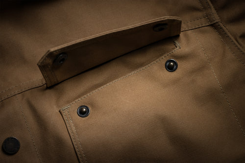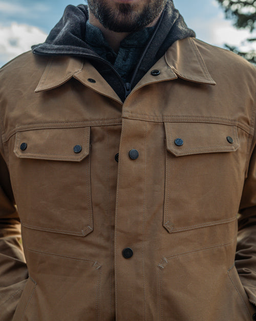 Functionality has been significantly upgraded. Hand pockets have been enlarged for true usability, interior snap-closure pockets add secure on-body storage, and the classic rear game pocket has been fully modernized with zipper closures—transforming it into a dependable, all-conditions cargo space. Updated snap hardware throughout reinforces durability while improving ease of use with gloves and layered systems.