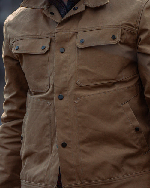 This latest iteration preserves the soul of the original while decisively modernizing its capability. Cut from British Millerain’s renowned Sahara canvas and finished with their washable Staywax™ treatment, Outrider delivers breathable, renewable weather protection that breaks in with use, developing a patina that records the miles, the work, and the hard days in between.
