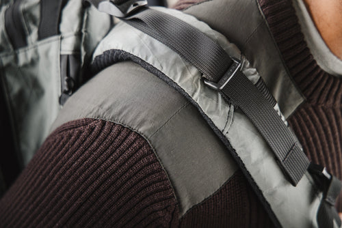 - An evolved array of storage options on the left bicep keep critical tools close at hand.