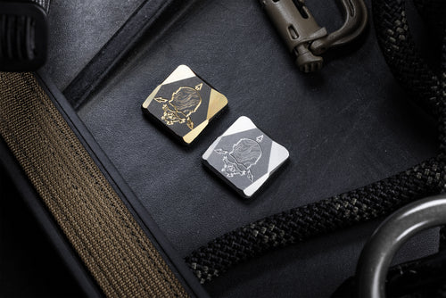 The Ranger Eye 3DM starts with a .130” piece of 6AI-4V titanium. It is then painstakingly precision milled by Rexford Knives to an incredibly high level of fit and finish. The multifaceted design is incredibly complex and takes on an almost jewel-like appearance. Our Pathfinder Logo is milled deep into the material offering a contrasting color. The Ranger Eye itself is heavily blasted and tumbled. Very fine and detailed machining produces subtlety at a glance that gives way to intricacy upon closer inspection. The Ranger Eye 3DM represents the ultimate expression of precision milling.
