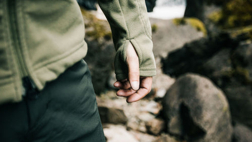 Thumb hole cuffs integrated into the seam to assist in layering.