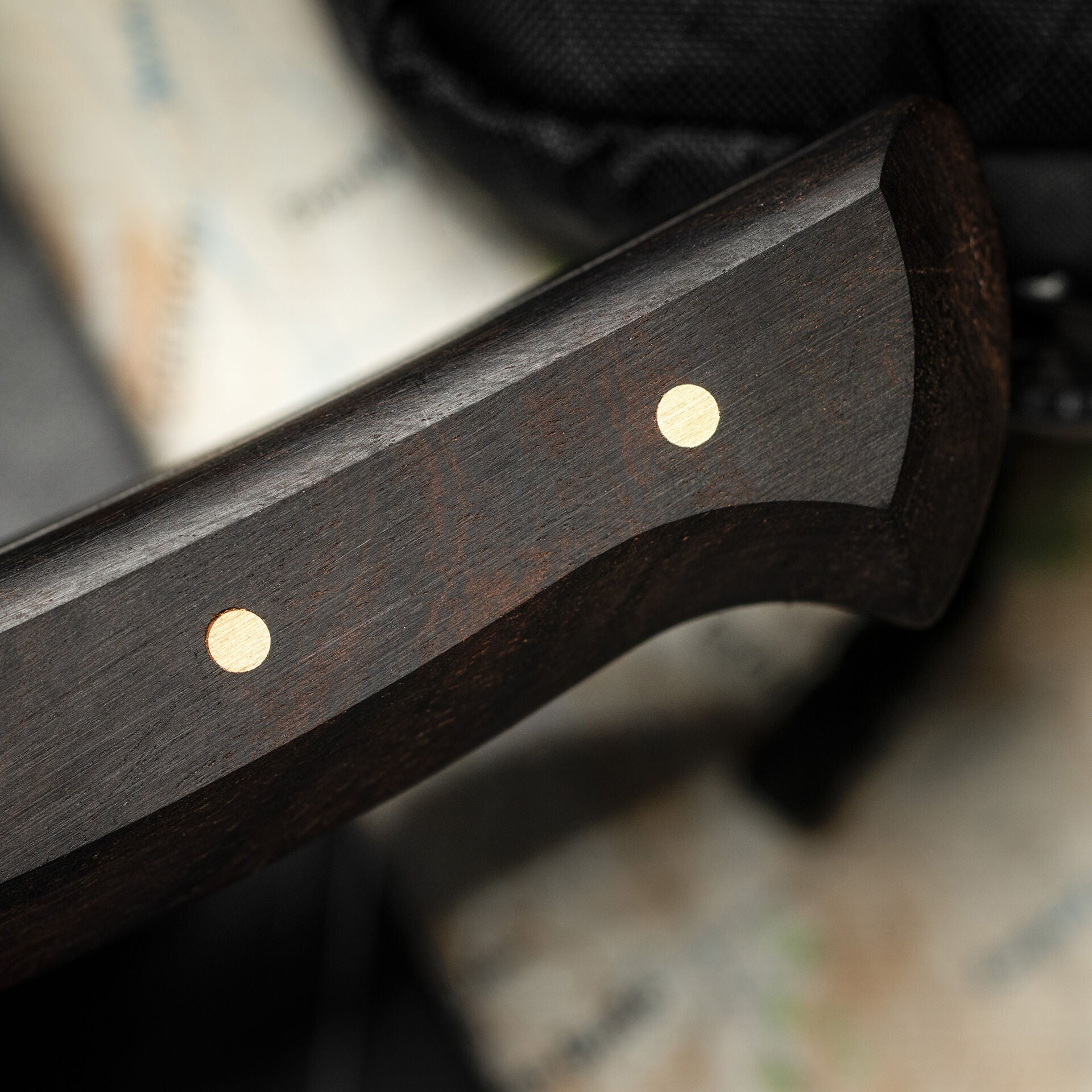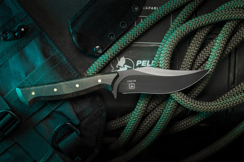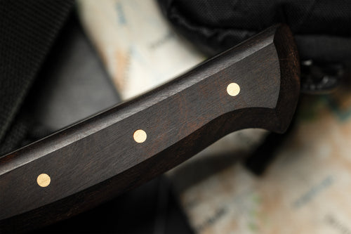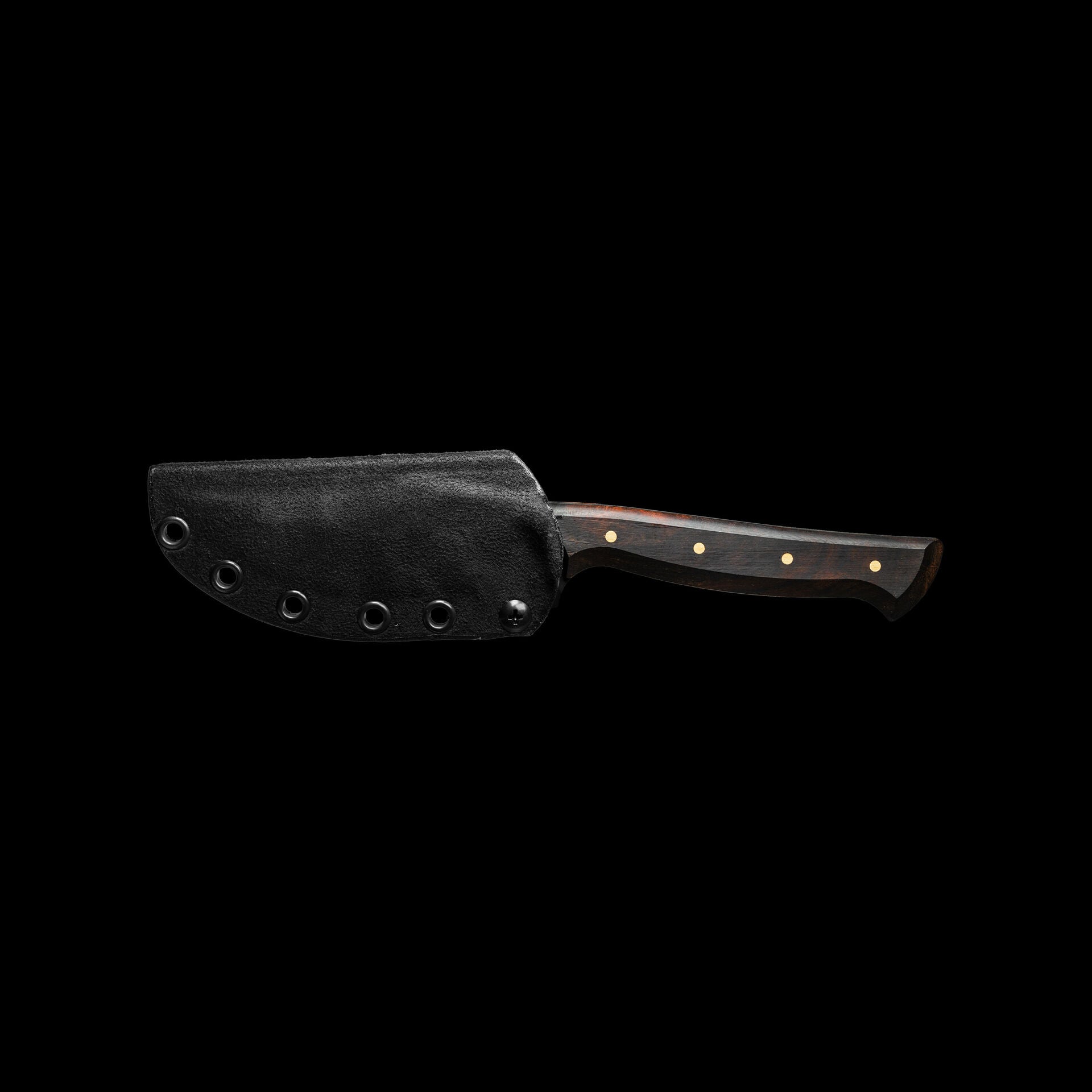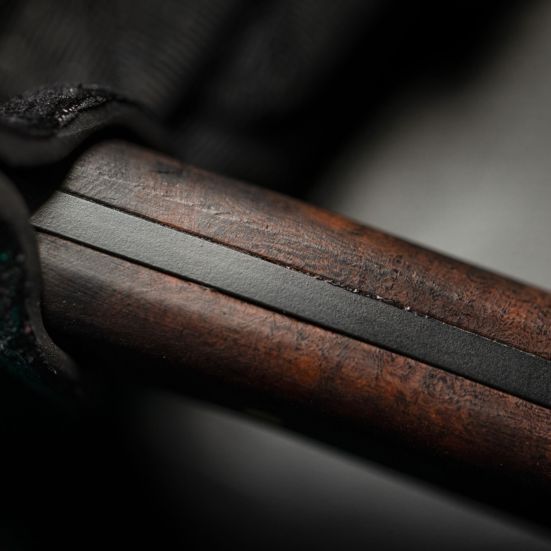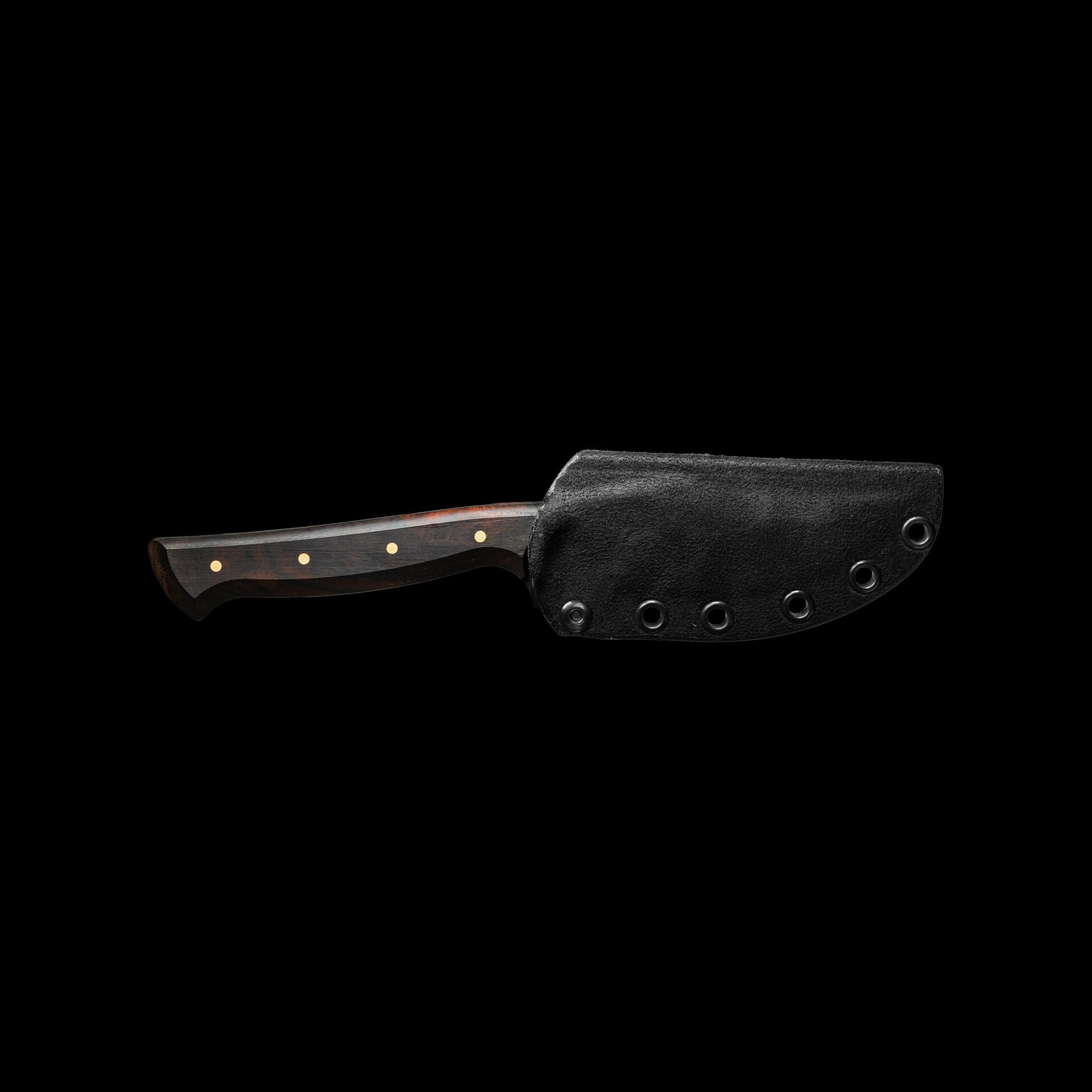 Crafted from CPM 154, a premium American-made stainless steel, the Reign offers an exceptional balance of edge retention, toughness, and corrosion resistance — perfect for hard use in the field without sacrificing sharpness or durability. Each blade is hand-fitted with a striking ironwood handle, known for its natural density and beauty, and secured with four brass pins for a timeless, rock-solid construction. Finished with a rugged black Cerakote coating for added protection and low-glare stealth, each Reign is sharpened to a razor-point edge that’s ready to dominate in both combat and utility roles. This is a knife that doesn’t just carry the legacy of Persian bladesmithing — it commands it.