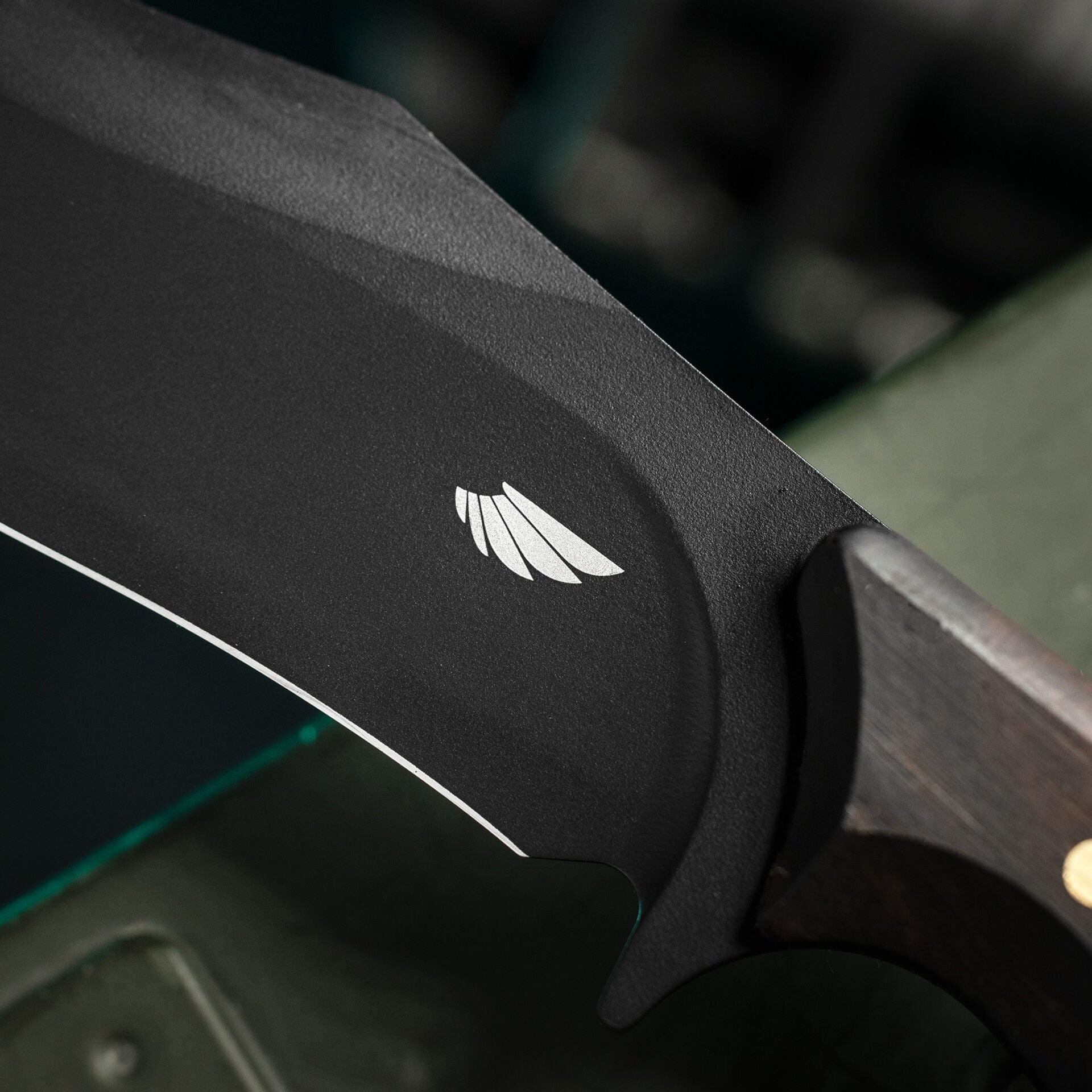 Measuring 9 inches overall, the Reign features a gracefully sweeping recurve blade that delivers exceptional slicing power by creating multiple cutting points along its edge. Inspired by a centuries-old design, the recurve excels at draw cuts and deep slashes, while the forward blade curve concentrates power toward the tip, making it just as effective for precise piercing and thrust work. The aggressive top wedge grind (false edge) reduces weight toward the tip, improves point control, and enhances penetration on hard targets — all wrapped in a silhouette that is as tactical as it is historic.