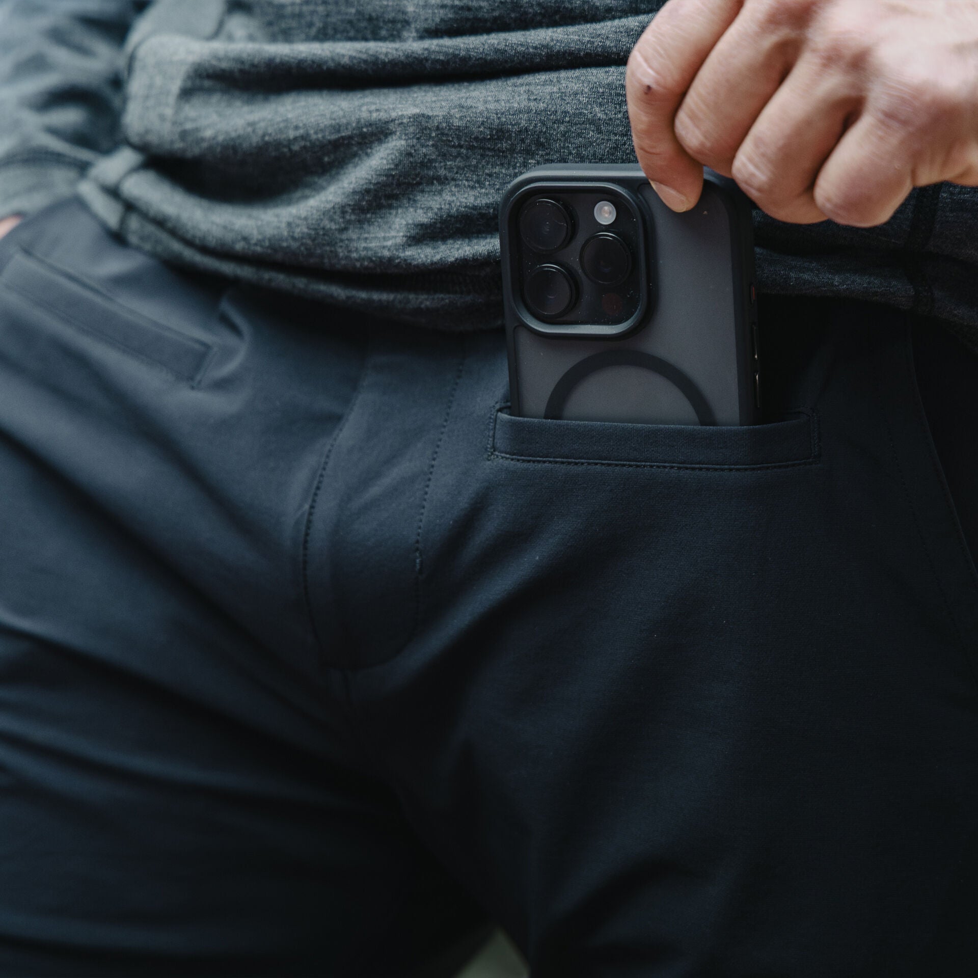Purpose-built pocketing includes two discreet welt pockets at the front, dual hand pockets for quick access to everyday carry, and two streamlined envelope pockets at the back, keeping your essentials secure yet within easy reach.