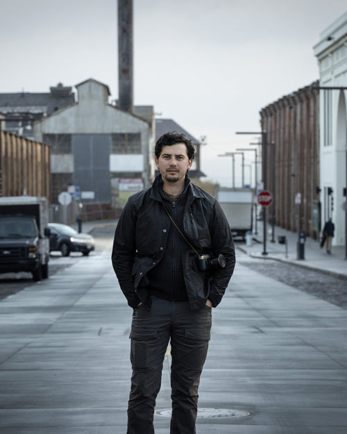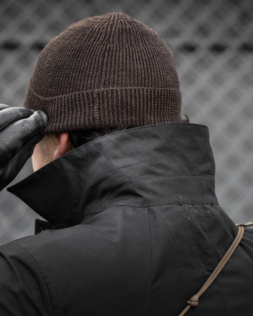 At the heart of its capability is a weatherproof cotton developed by Halley Stevensons in Dundee, Scotland, long celebrated as a benchmark in performance textiles. 100% long-staple cotton, 7.07 oz/yd² (240 g/m²), finished with a Hybrid Aero washable wax and advanced DWR, it was engineered for rugged function and refined for everyday wear. Densely woven fibers swell uniformly when wet, naturally blocking rain and wind while remaining air-permeable for all-day comfort. This breathable, highly durable fabric delivers the quiet confidence of natural cotton with the modern advantage of technical weather resistance.