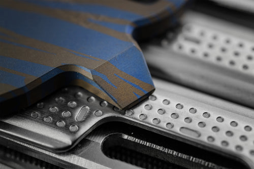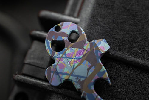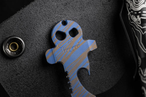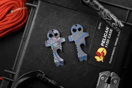 The Skeleton Key returns as a limited edition collaboration with Ty Kirsch of Chute Yea Designs, whose meticulous anodizing work has earned a dedicated following in the EDC community. Kirsch approaches titanium with the mindset of both craftsman and scientist, relying on precision, patience, and clean process over expensive equipment. Every piece begins with careful prep and is handled only with gloves from start to finish to preserve the purity of the surface and the integrity of the color.