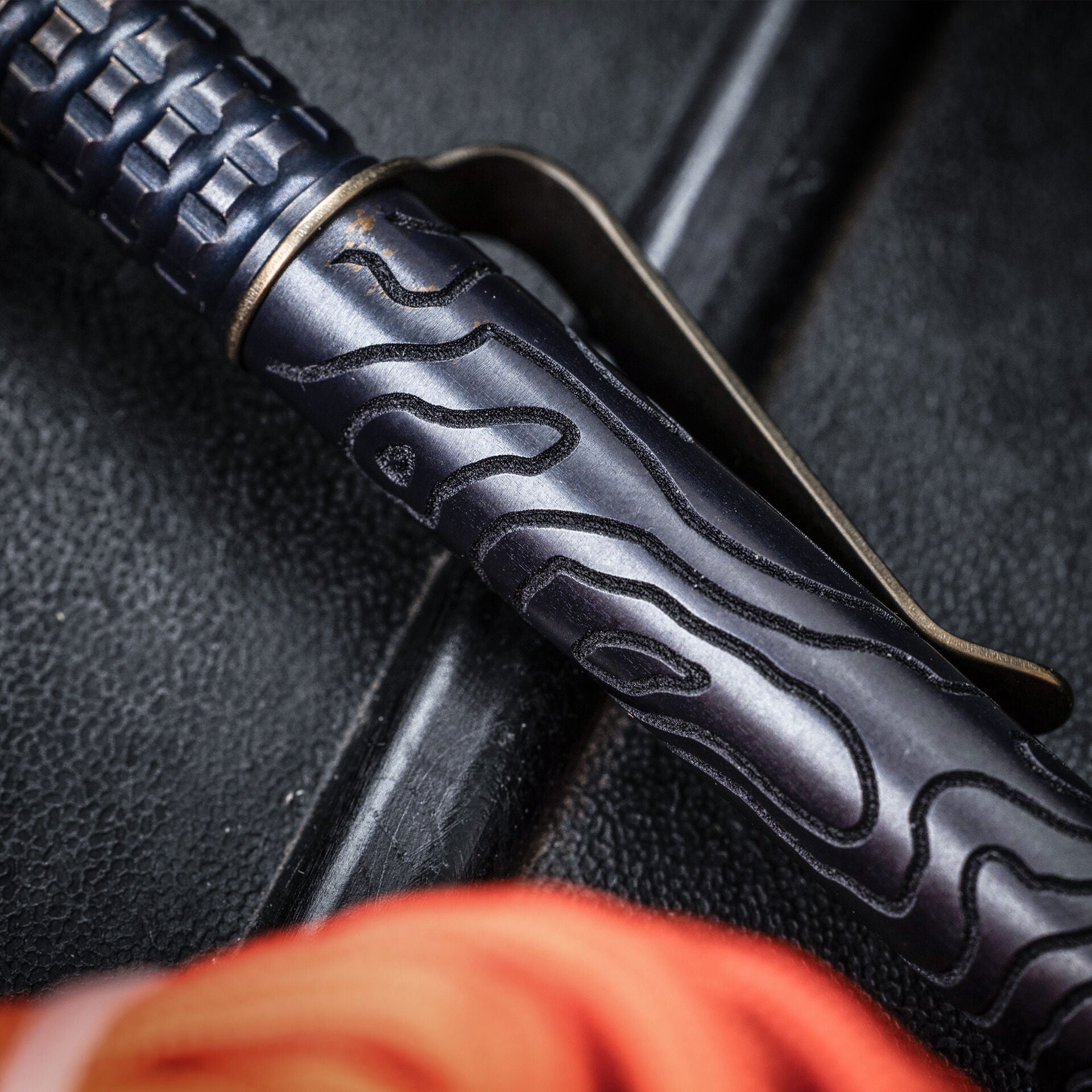 This edition of the Ti2 Techliner comes in their Fallout TRD finish with laser engraved topo design throughout the body and cap. TRD stands for Thermo-Reactive Diffusion which is a high temperature carbide coating that improves wear resistance. Our Fallout TRD finish offers varying levels of black, bronze and gold tones and is unique to each pen. Each pen is hand sanded to ensure tips and tails are matched to each body.