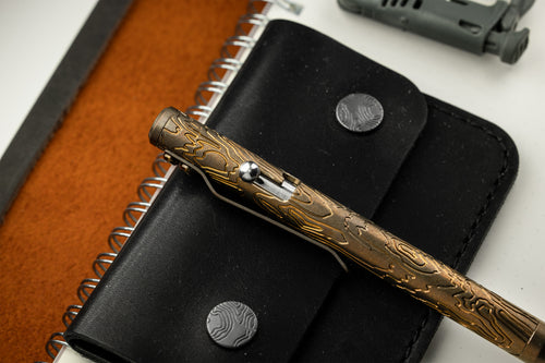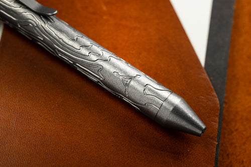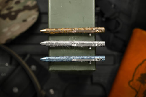 Brian Fellhoelter created this pen with his first Kickstarter project that received an overwhelming response. It has since become ubiquitous among Fellhoelter fans due to its unique style, elegance, and heavyweight feel that takes it above and beyond the tactical pen category. This pen captured our attention due to the overwhelming simplicity of a 100% Titanium, American-made pen. The body, tip, bolt, ball, shaft, torx screws, cap, pocket clip and hidden parts are all made from Titanium. The only exception is the ink cartridge, the spring and the O-Ring. The unique bolt-action mechanism creates a tactile feel rarely found in click pens and its versatile nature makes it ideal whether used in the office environment or out in the field.
