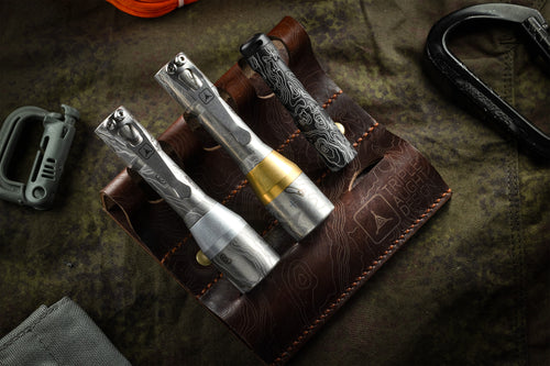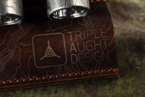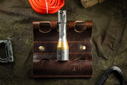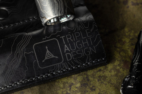 The Topo Etched Torch Valet is an elegant solution for the organization and display of your daily carry tools. This valet is made of moss green Italian "Pueblo" leather from Badalassi Carlo. Badalassi Carlo is part of a small network of registered tanneries in Italy that maintain very stringent standards. The black and brown variations come from Horween with their proprietary chromexel formula. These valets were designed to hold three torches, but also do well with most folders. Stitched and brass riveted, these valets will last for generations. Our TAD Edition has been laser etched with TAD's logo and proprietary topo, complimenting the 3-dimensional and organic aesthetic design.