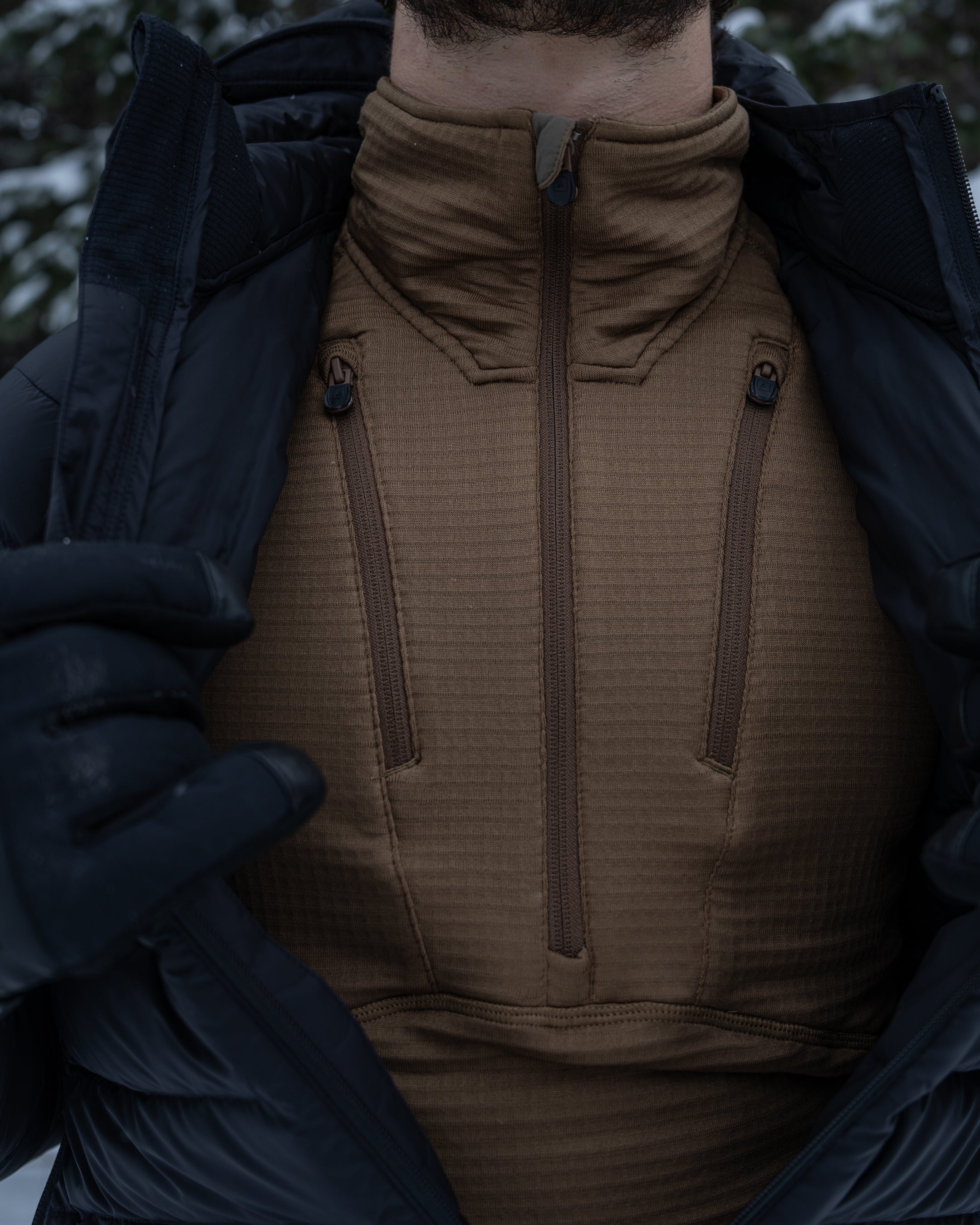 Angled chest pockets keep temperature-sensitive gear close to your core.