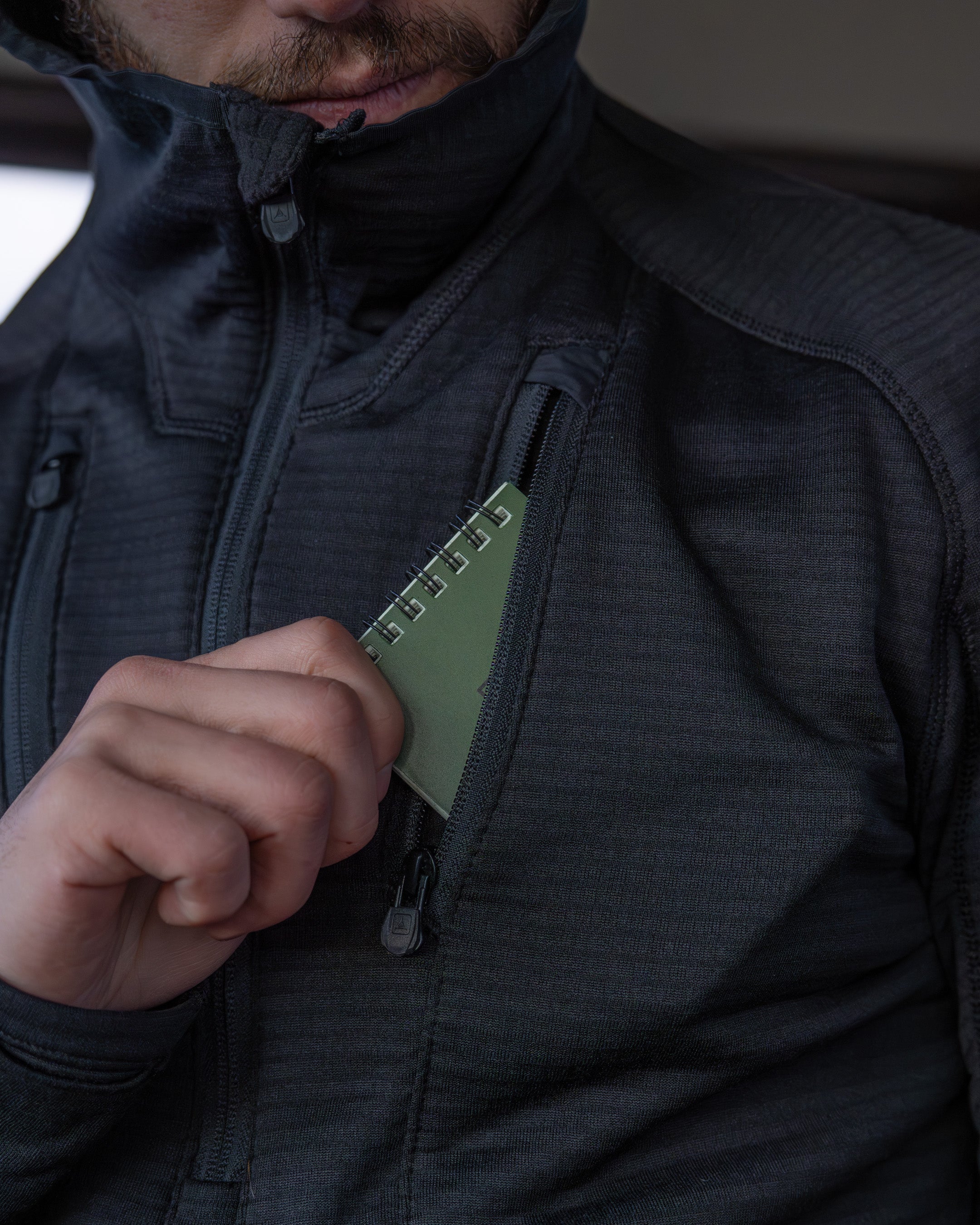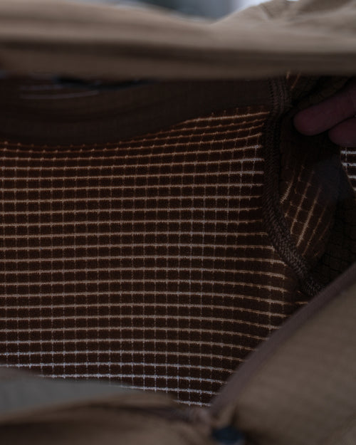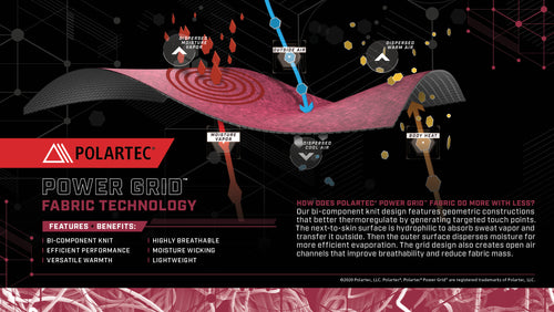 At its core is Polartec® Power Grid™, an advanced bi-component knit engineered to increase warmth, reduce mass, and accelerate moisture transport. This specific weight of Power Grid is exceptionally versatile—warm enough for cold-weather missions yet breathable enough for high exertion—making it the ideal next-to-skin foundation when operating across varied terrain.