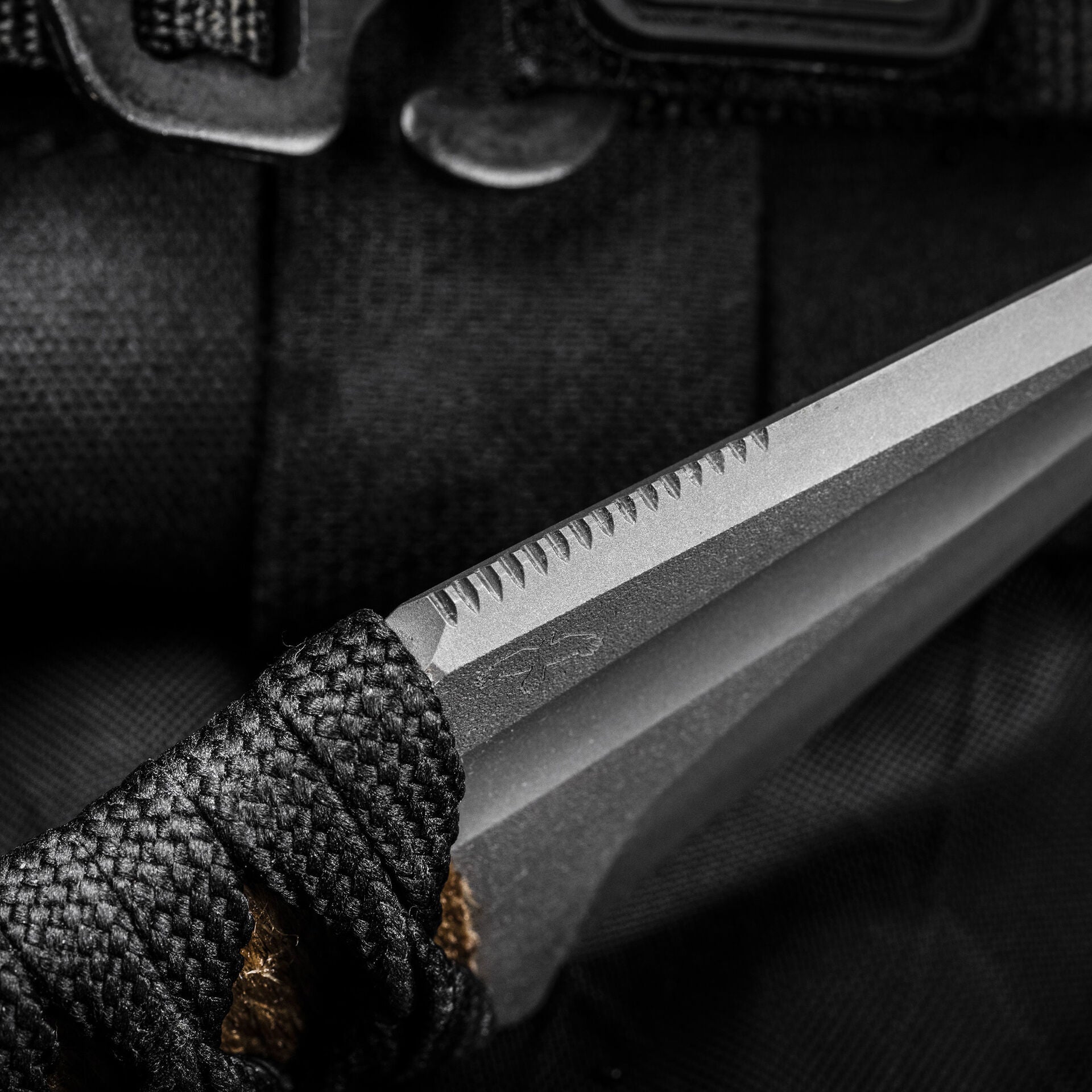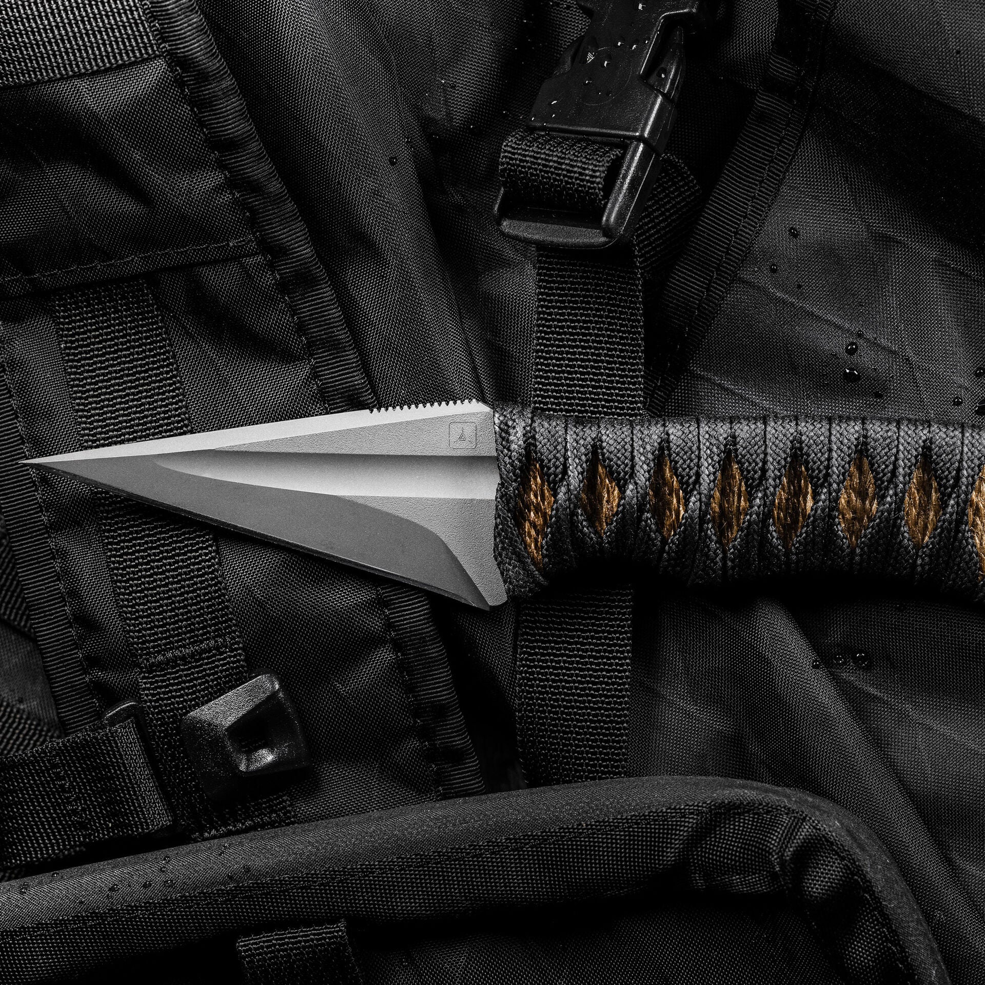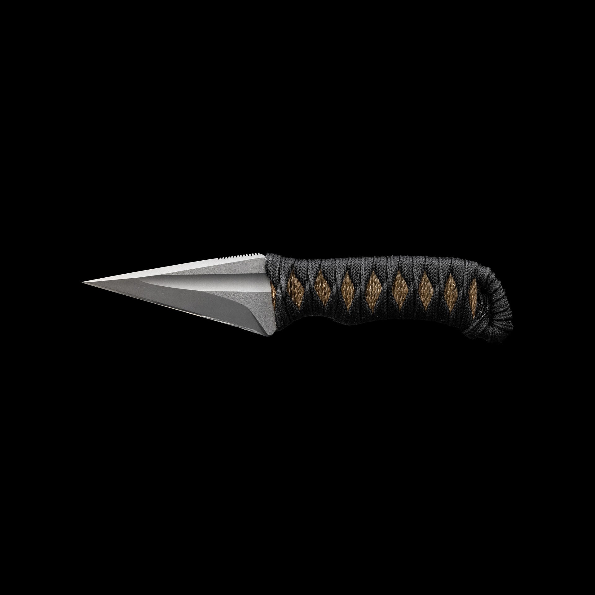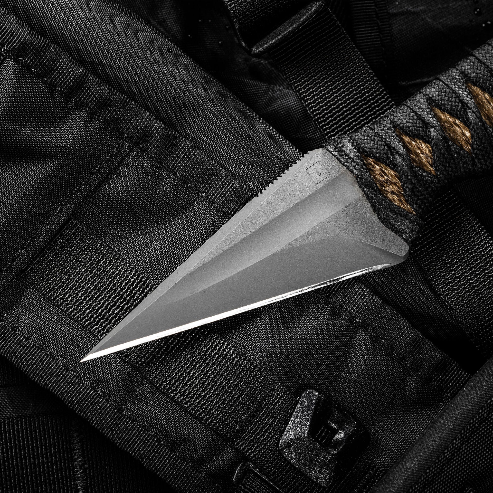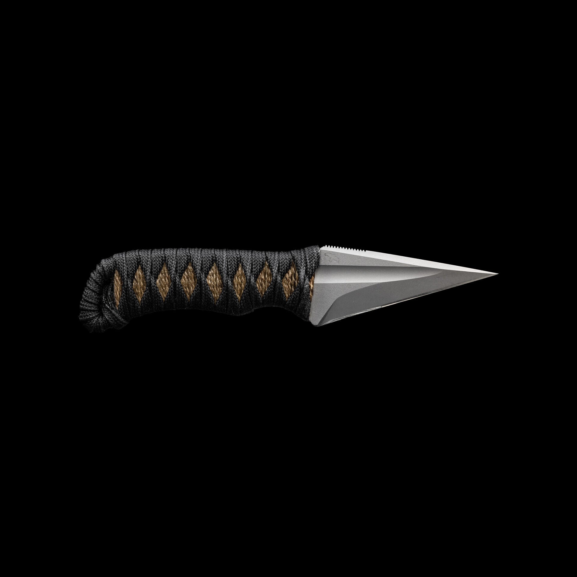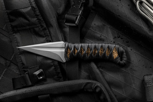 The Espina is an absolutely stunning design from Windy Raven. The 3V blasted blade is unparalleled in its acute point and arrow shaped profile. The black nylon is wrapped over jute for a secure grip.
