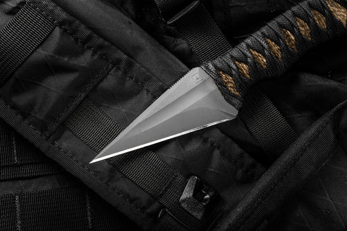 The fully swedged needle-like point, matched to a full sized secure handle, makes for a powerful emergency cutting tool. Made from blasted 3V with pronounced fuller and full swedge the Espina excels at point driven and carpenter’s grip methodology. The contoured grip with a black Japanese-style wrap over jute, locks the knife in your hand. The Espina is small enough to disappear in your daily carry but strong enough to serve when called into action.